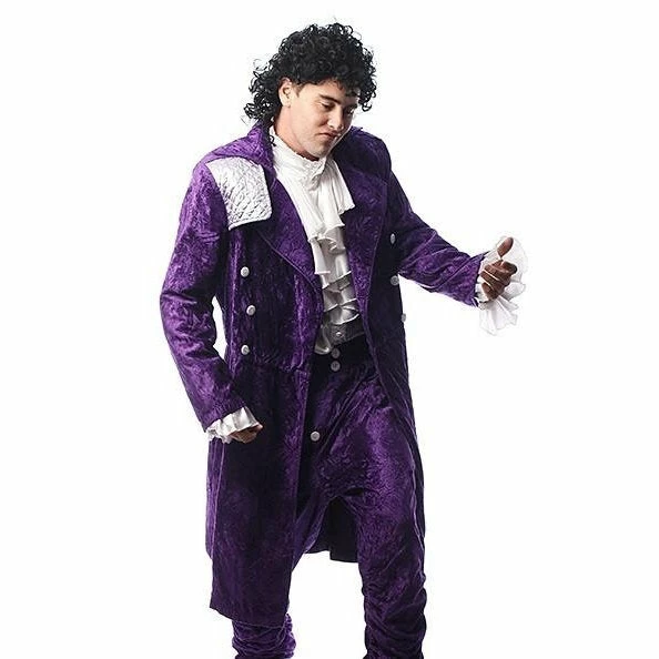 - Deluxe crushed velvet suit includes long double breasted jacket.