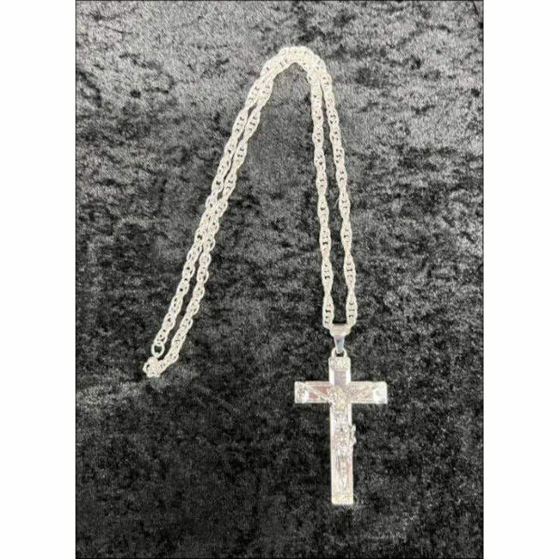 Big Silver Necklace with silver cross will complete a Priest or Nun’s costume.