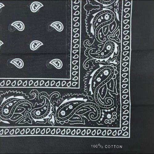 Accessorize your Cowboy costume with this black paisley cowboy bandana.Â