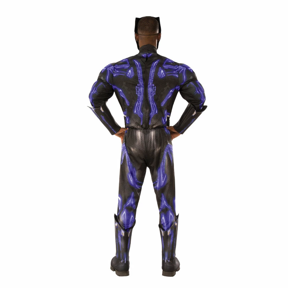T’Challa is battle ready in this Black Panther Adult Battle Costume. Defend Wakanda from enemies using super-human senses, speed and strength. This outfit was inspired by the Black Panther 2018 movie.Â