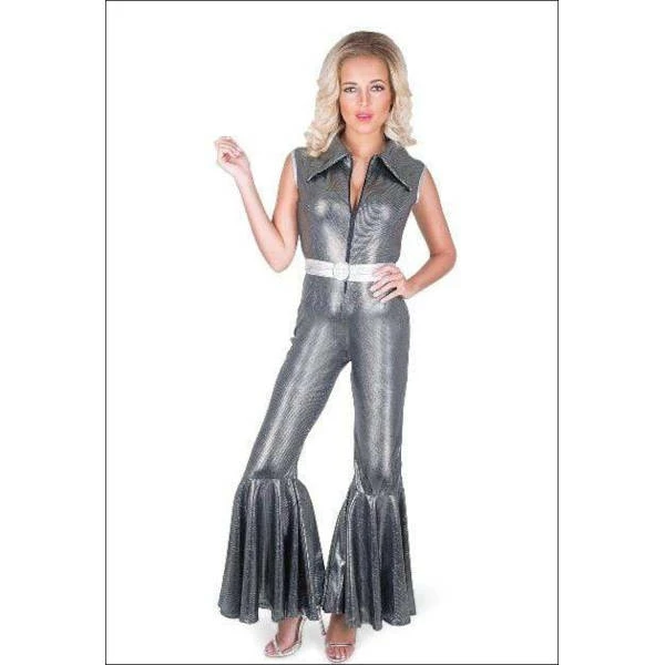 Black/Silver Disco Diva 70’s Metallic Jumpsuit Includes: