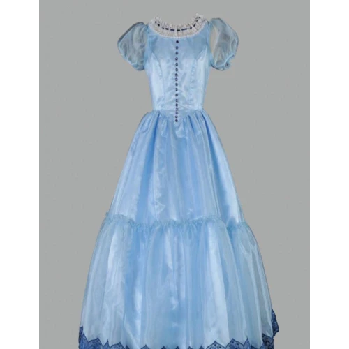 This Deluxe Alice has dainty detail with lace and satin ribbon and pearly buttons. The fabric is georgette and satin. Very feminine.