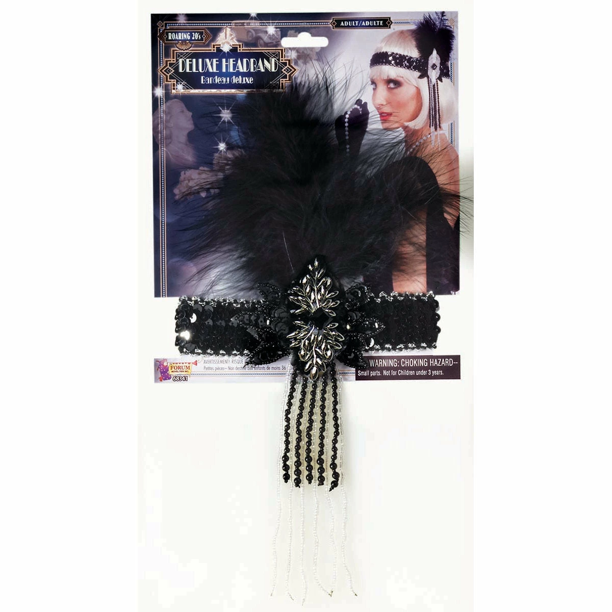 Complement your Flapper/Gatsby costume with this stunning deluxe black Flapper Headband embellished in art deco style.