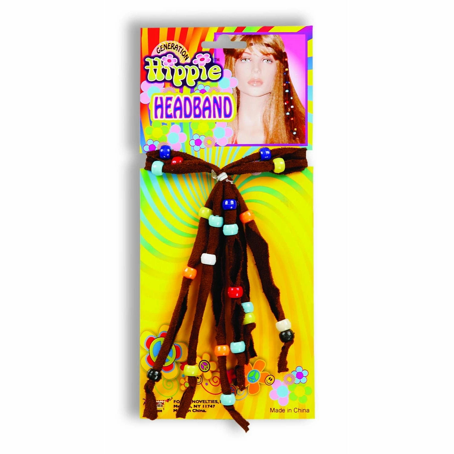 Deluxe Hippie Beaded Headband made from strips of suede fabric trimmed with beads. This fun headband will complete costumes like:
