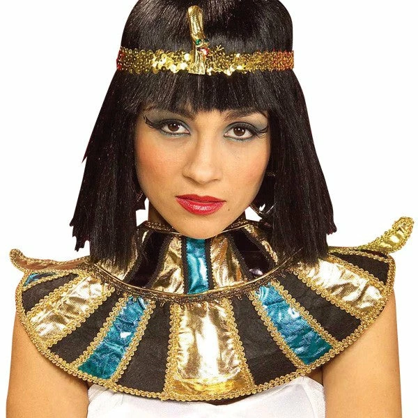 This dramatic Egyptian Collar wraps around and ties at the back. Wear over a white or black dress for best effect.