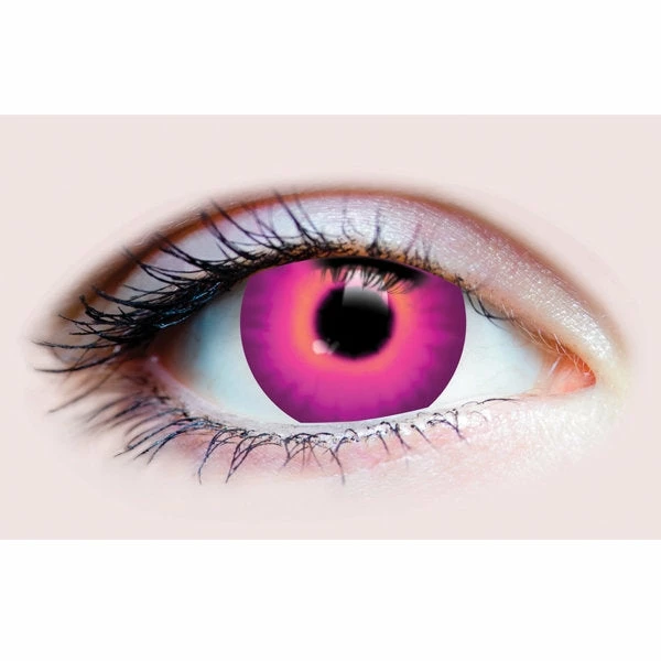 Jinx 15.2mm mini scleral costume primal contact lenses are unique pink contacts with yellow rim near the pupil. The contacts decrease the size of your pupil to add a little extra for many characters and costumes including creatures like unicorns and fairies.