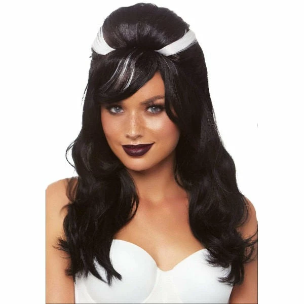 No mistress of darkness is complete without her signature hairdo, complete your bride of horror costume with the Leg Avenue 21″ Frankie Bouffant Wig. This seductively spooky look features a two-tone bouffant, white hair accents, and tousled wavy locks. Complete with an adjustable wig cap for a comfortable fit. Perfect for a Halloween costume or cosplay.
