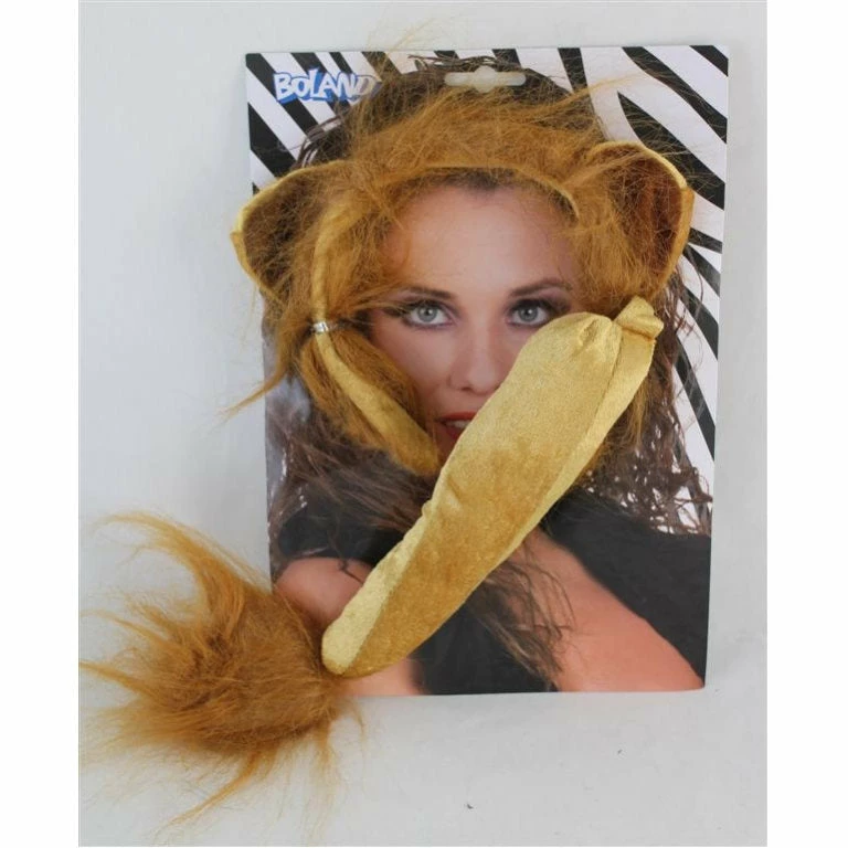 Lion ears on headband trimmed with marabou, matching tail with marabou tip wear on a belt or attach with a safety pin.