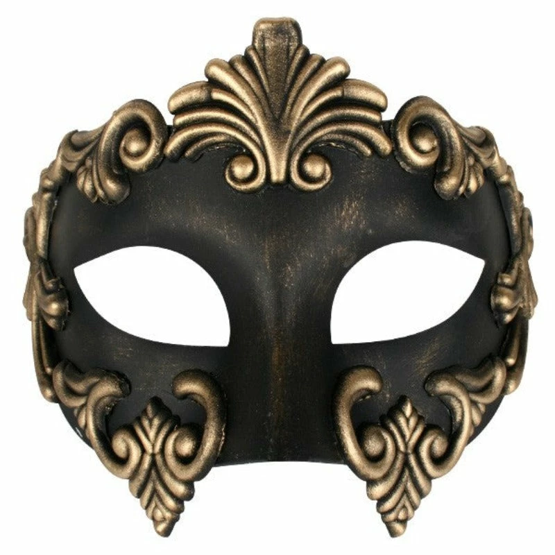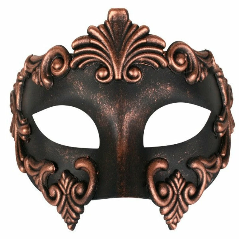Lorenzo decorative Venetian style Men’s masquerade mask in copper, silver, gold and black.