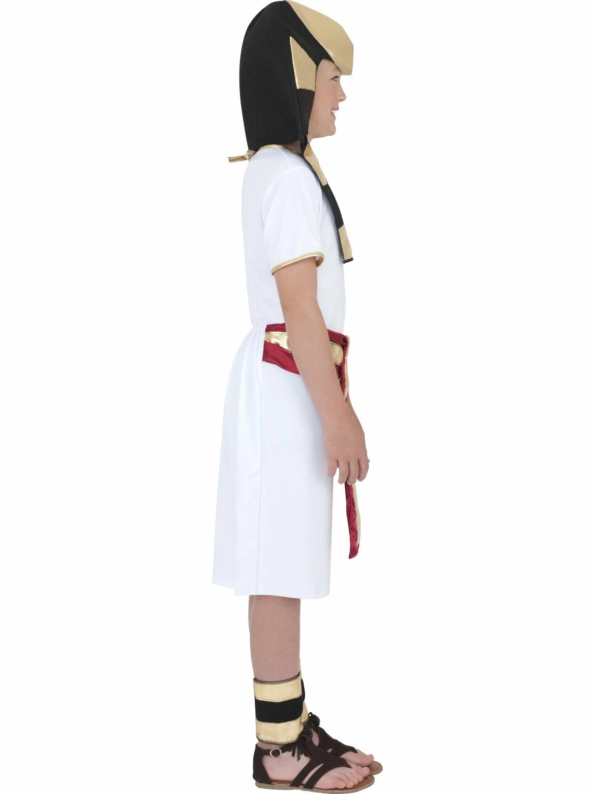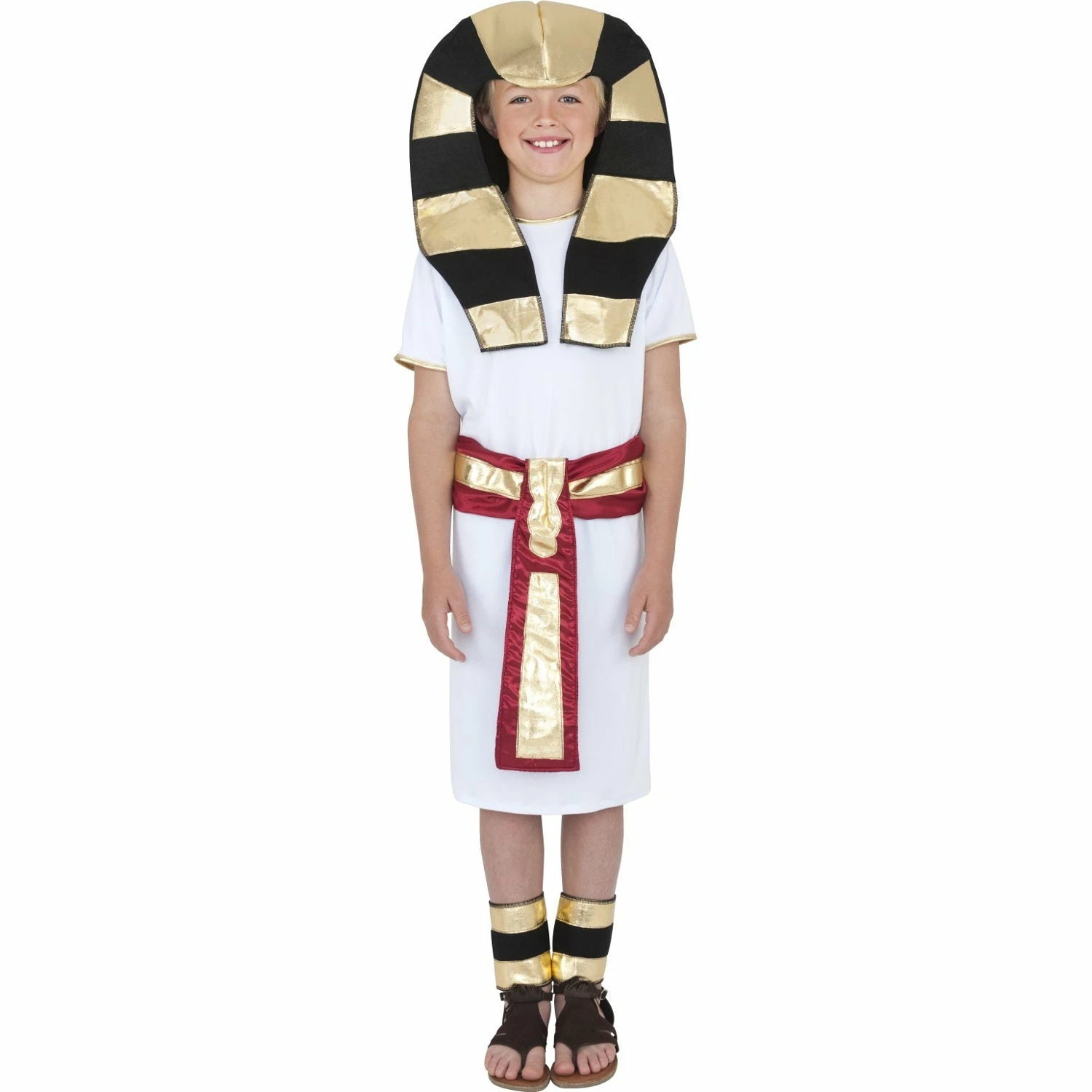 Child’s Egyptian Pharaoh costume includes: Robe, Belt, Headpiece and Anklets.