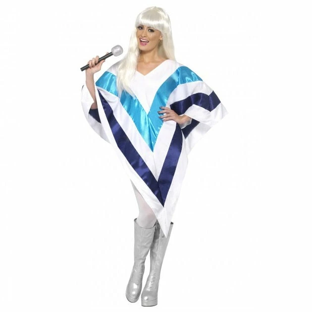 This cape comes as a white poncho style with light and dark blue ribbon detailing. Looking for a great costume for the Abba Festival in Trundle, then team up our Poncho with the Dancing queen wig for your 70’s look.