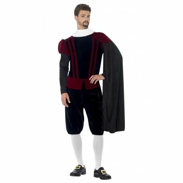 Tudor Lord Deluxe Costume Includes: Top, Trousers, Cape and Neck Ruffle.
