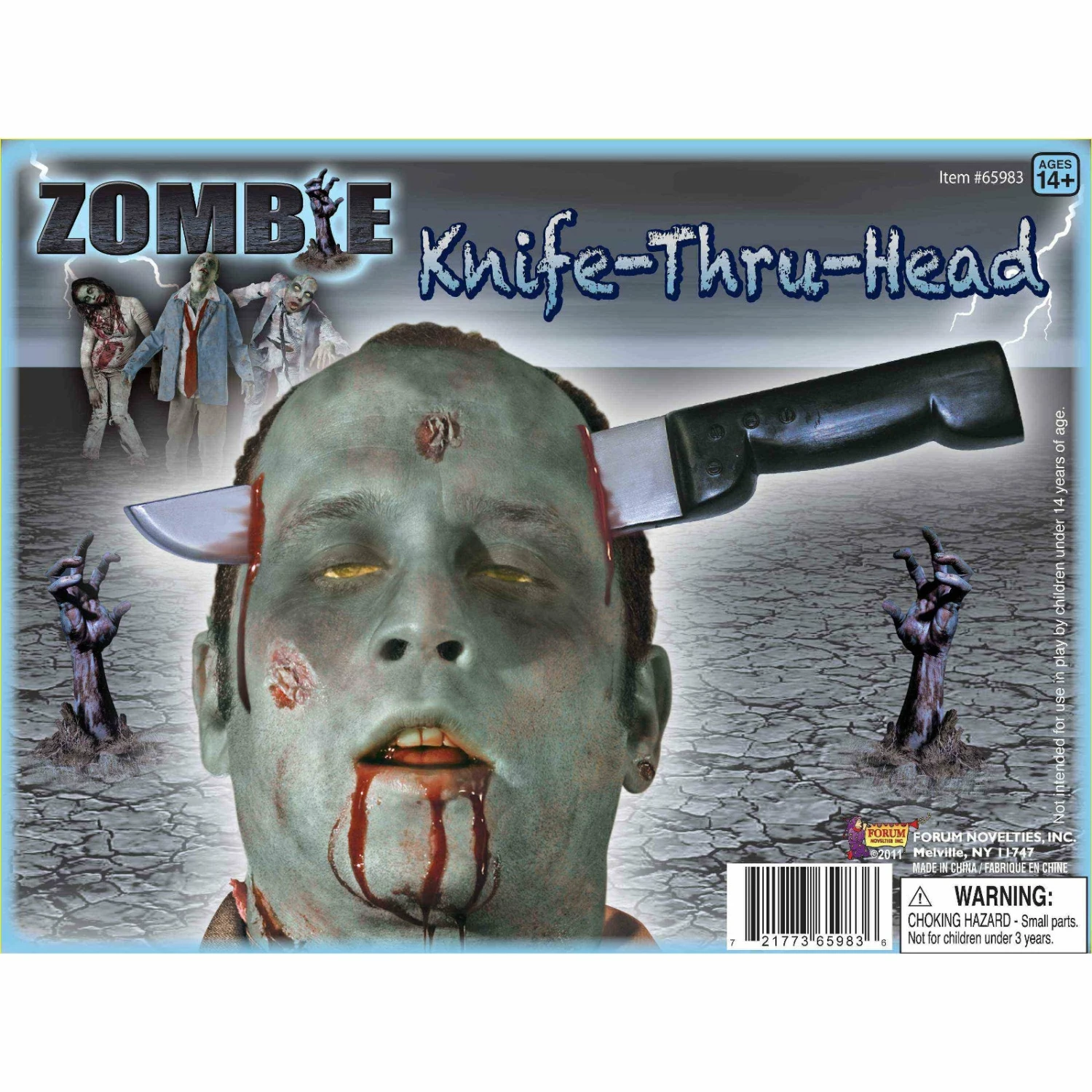 Plastic headband with knife to fool your friends, add some Zombie make up to complete the joke.